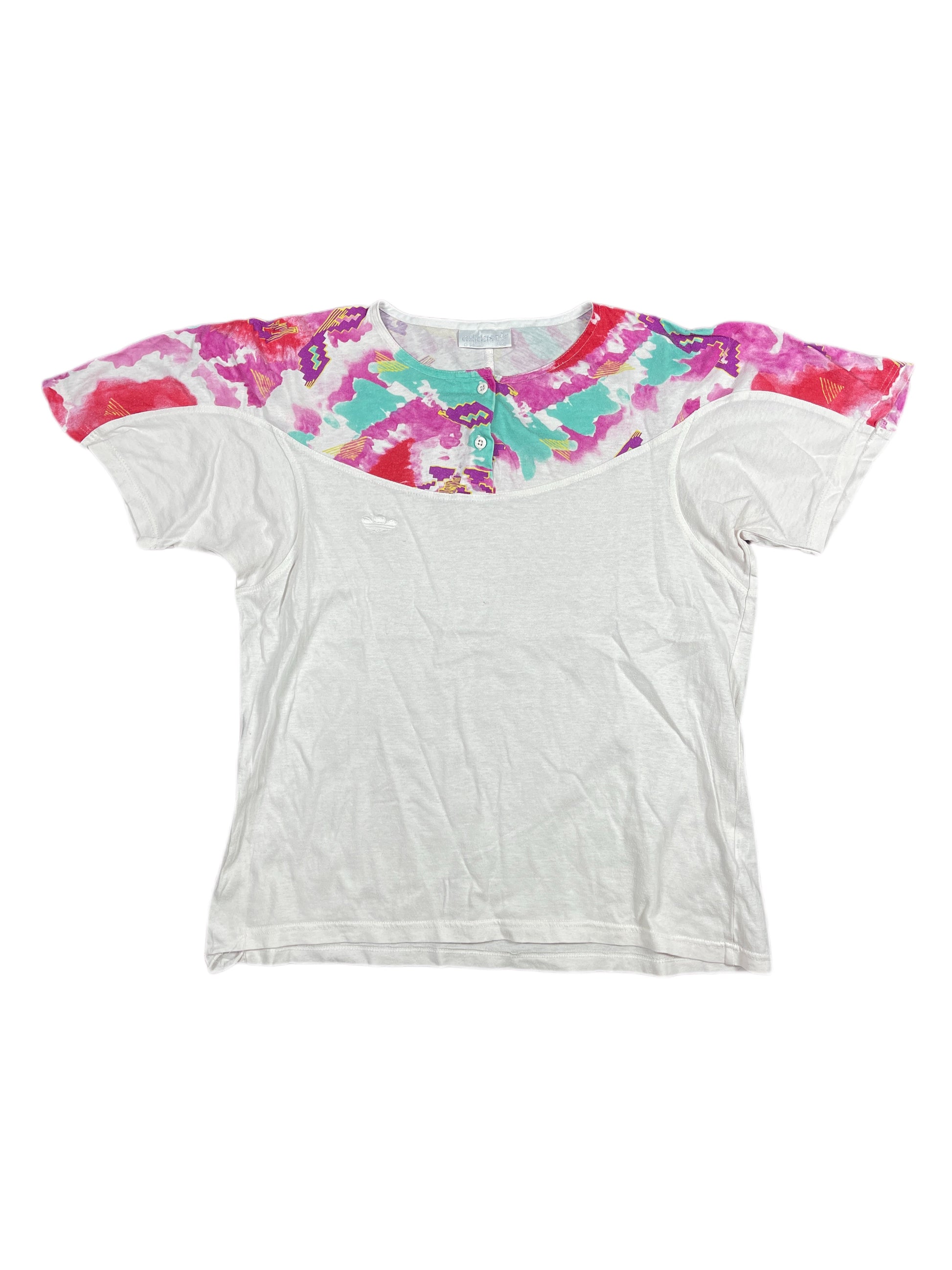 Vintage Adidas 1990s Short Sleeve Top White Pink - M
