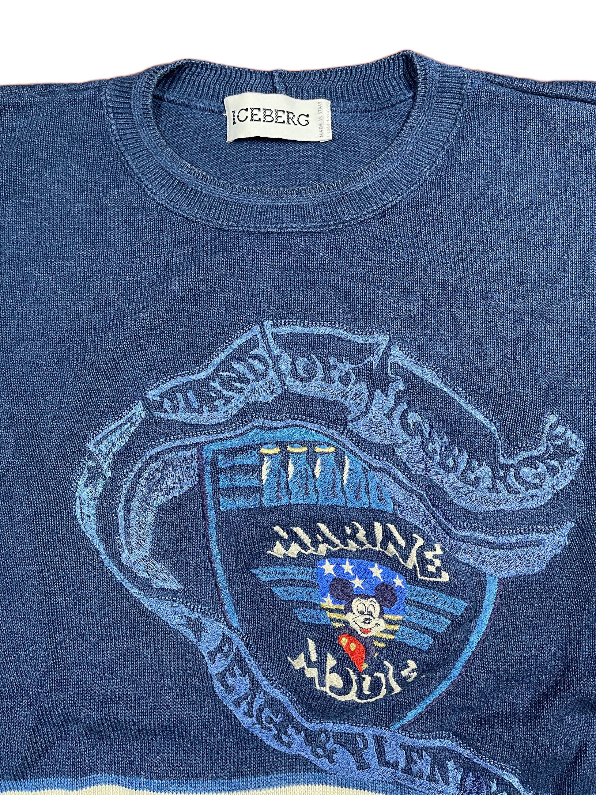 Vintage Iceberg 1991 Mickey Mouse Marina Knitted Sweatshirt Blue - L