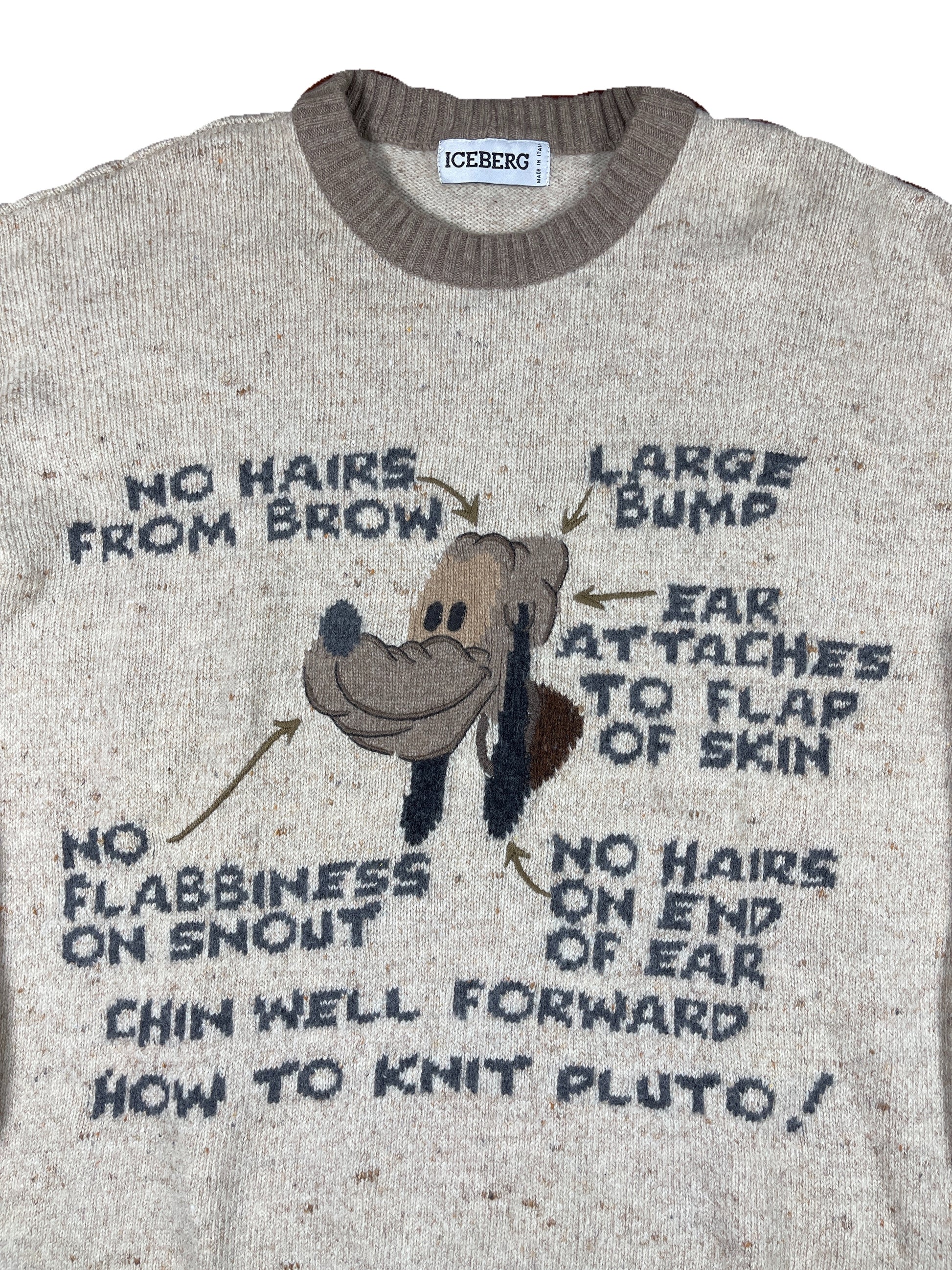 Vintage Iceberg Pluto 1994 Disney Chunky Knitted Sweatshirt Beige Cream - XL