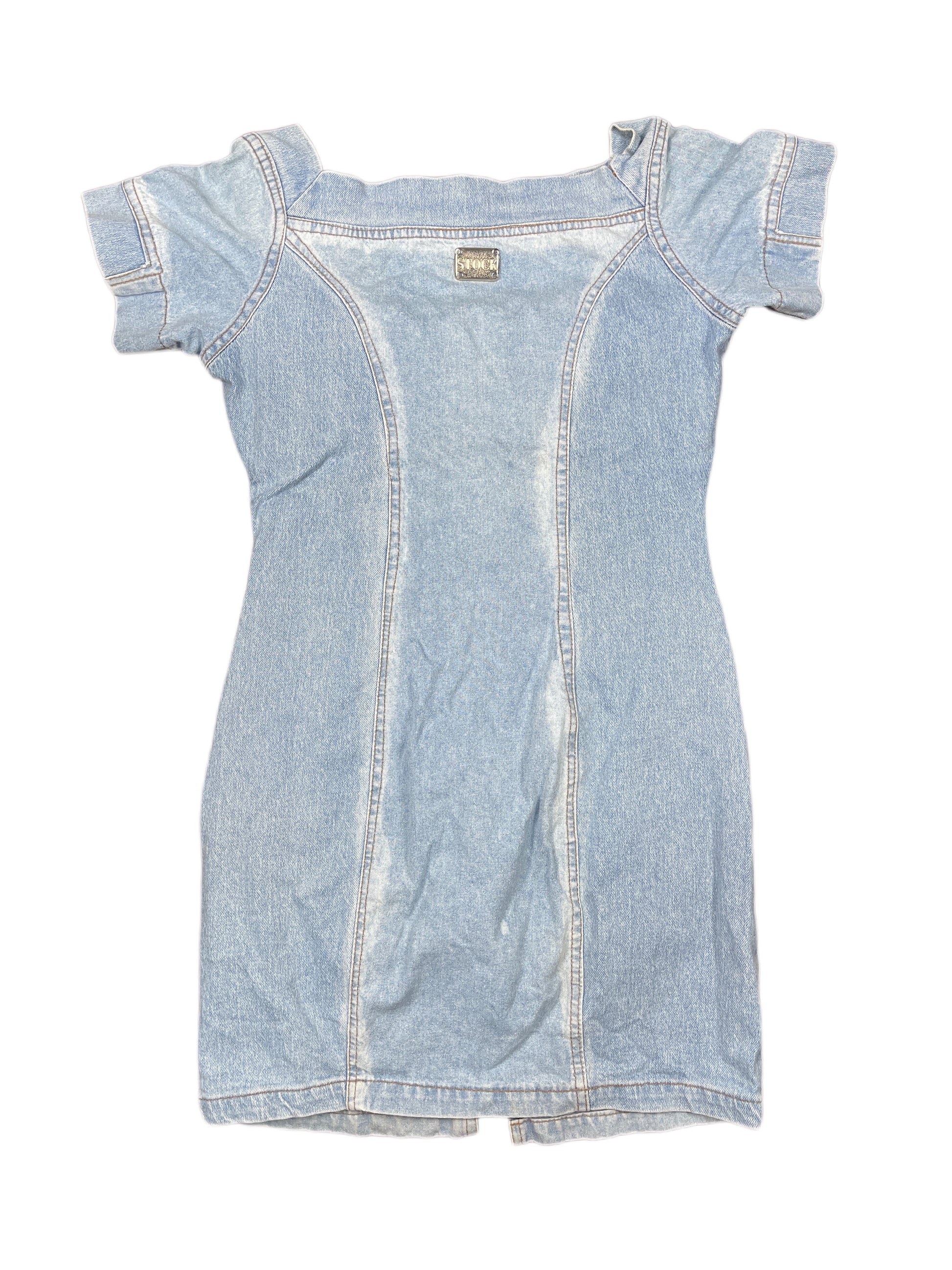 Y2k Bustin Stock Denim Short Sleeve Dress Blue - XL